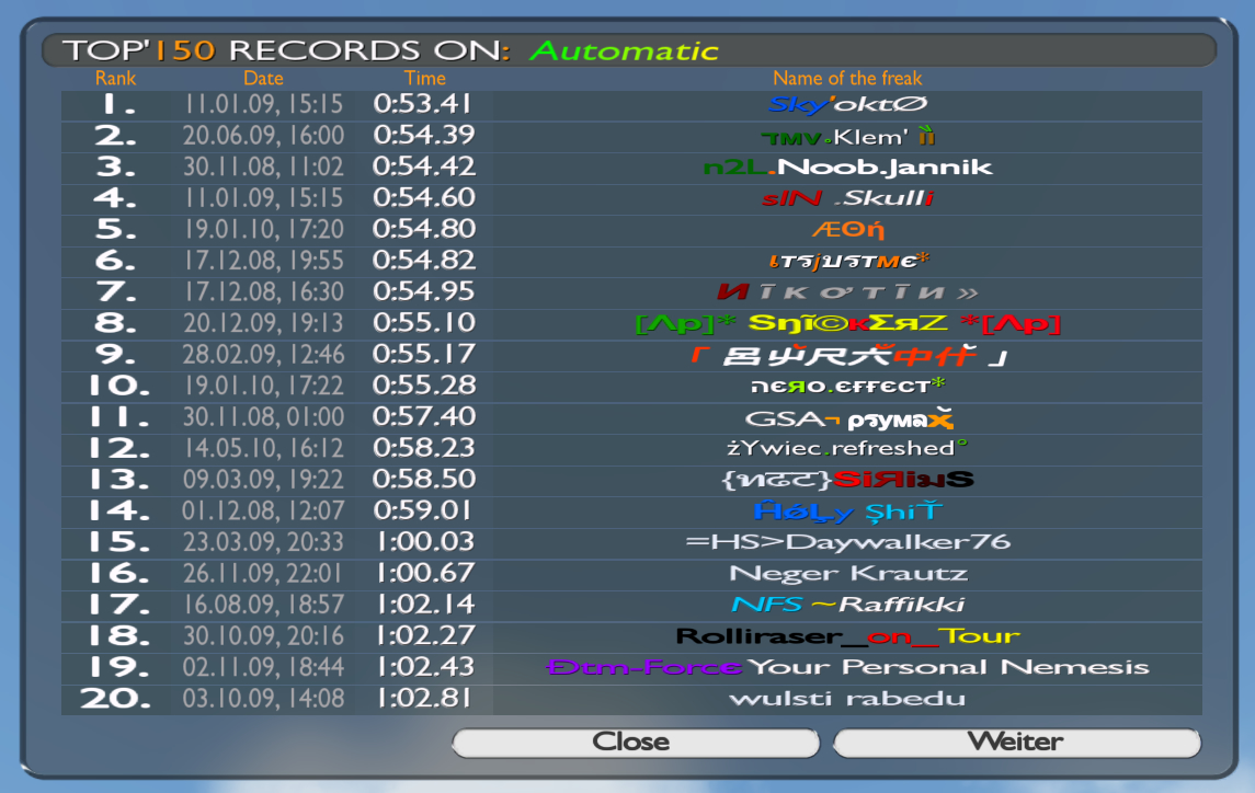 - Added: Trackname in records windows (top20 recs on "trackname")